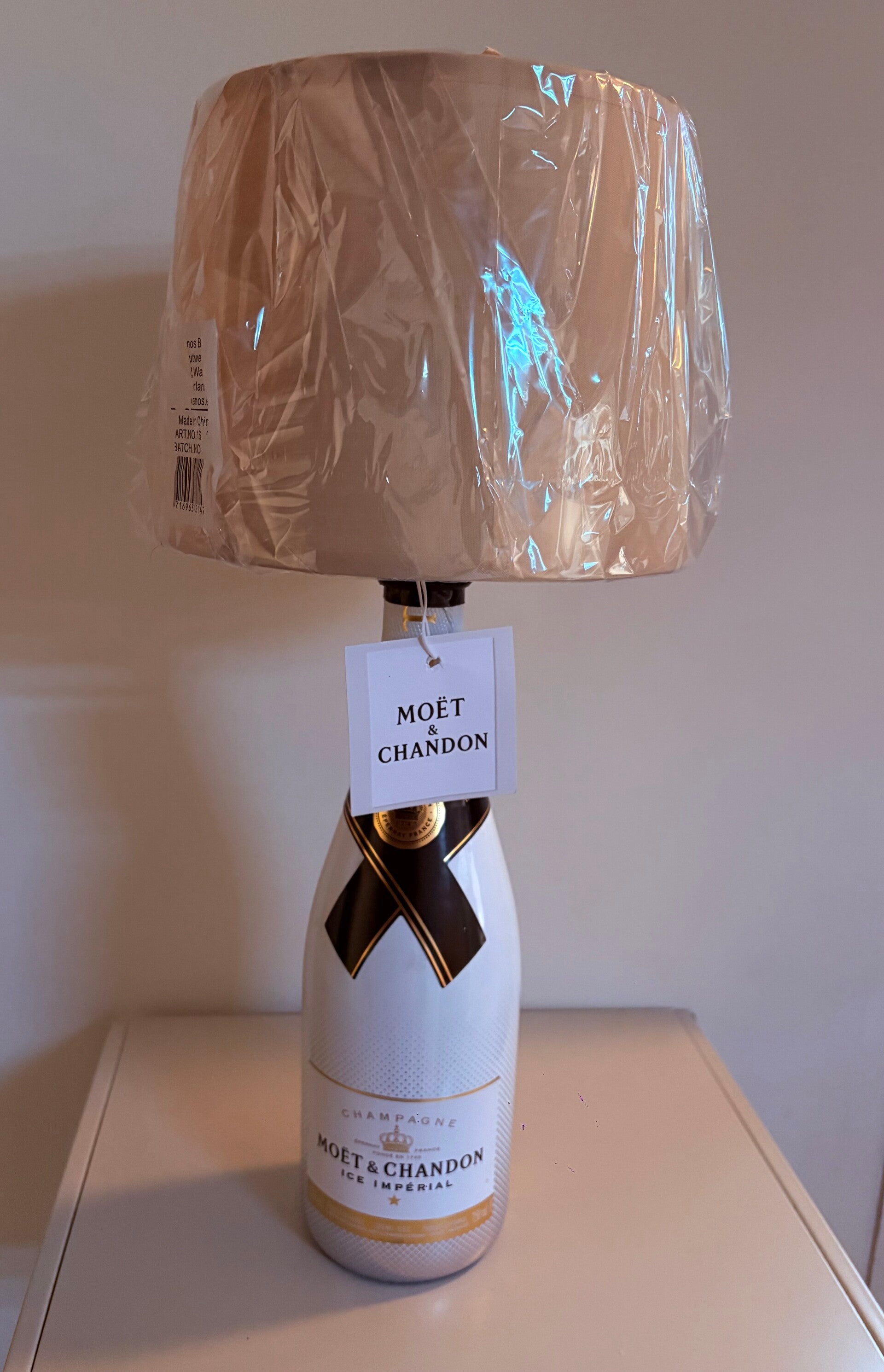 Stijlvolle champagne tafellamp met witte ,zwarte of beige lampenkap handgemaakt met schakelaar en stekker 220 v .